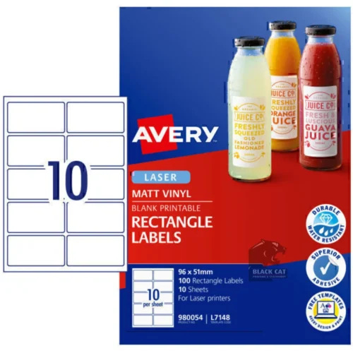 Ensure professional, long-lasting labelling with Avery Matt Vinyl Rectangle Labels. Each 96 × 51 mm matte-finish label is engineered for laser printers, delivering crisp, smudge-resistant prints that withstand handling, moisture and fading. The premium vinyl material adheres securely to paper, cardboard, plastic and metal surfaces, making these labels ideal for asset tagging, outdoor signage, product identification and more.